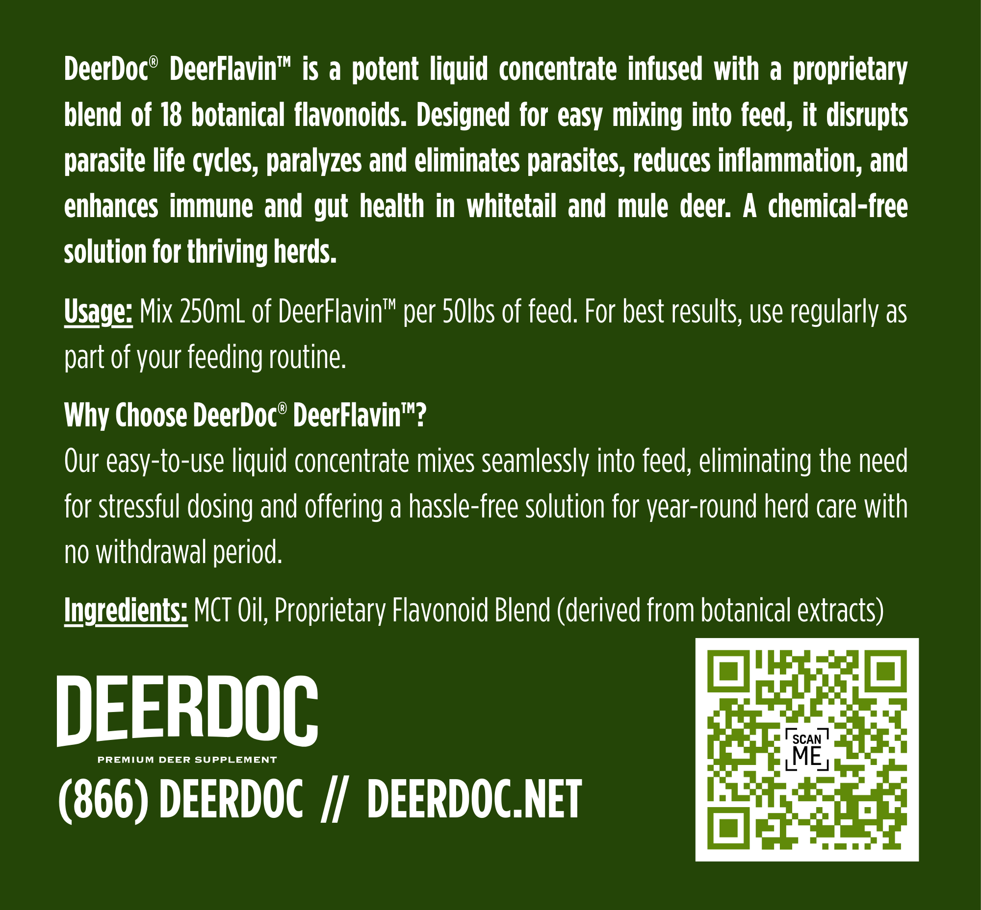 Just mix DeerDoc into your regular feed. No stress, no handling, no hassle. Deer, sheep, goats, and other livestock love the taste—and you’ll love the peace of mind.